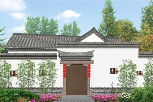 頂將紅瓦改換成黑瓦,圍墻上增加窗洞,用木格柵修飾,提升民居內(nèi)部空間的通透性修繕大門,增加大門上方門頭,采用仿古做法。