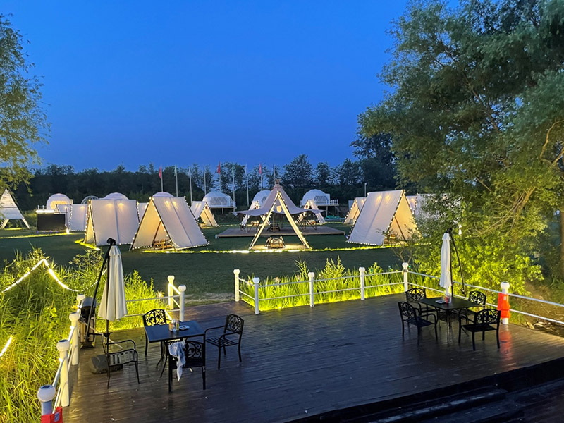 此區(qū)塊位于規(guī)劃地塊的東北角濱水區(qū)塊,該區(qū)塊項目設(shè)計意在配合度假酒店,加載精品化的休閑度假項目,打造精品度假體驗。其主要內(nèi)設(shè)項目包括垂釣俱樂部、房車營地、篝火廣場、精品帳篷酒店、帳篷餐廳和露天燒烤園等等